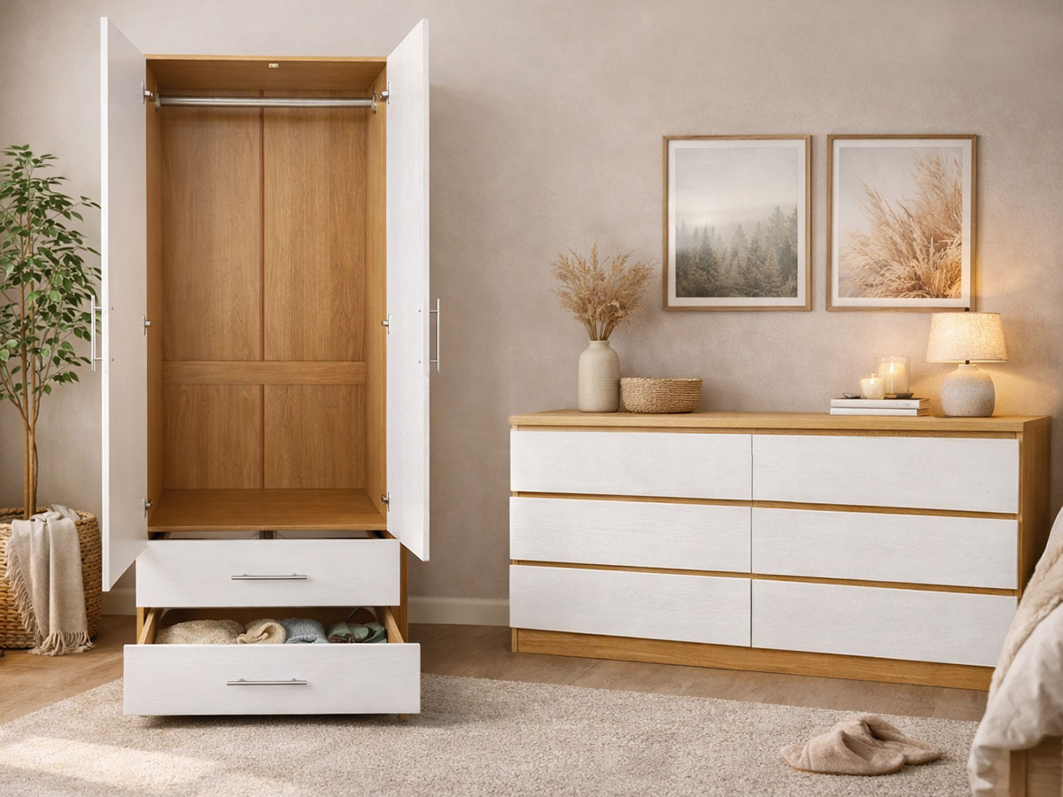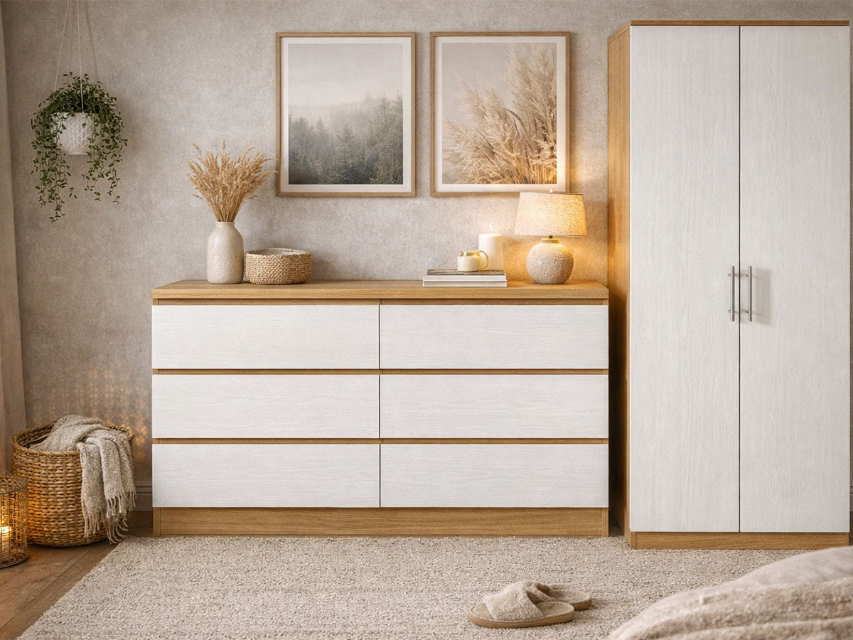 Novas tendências e cores suaves para decorar o teu quarto, elemento de destaque, cómoda Milan.