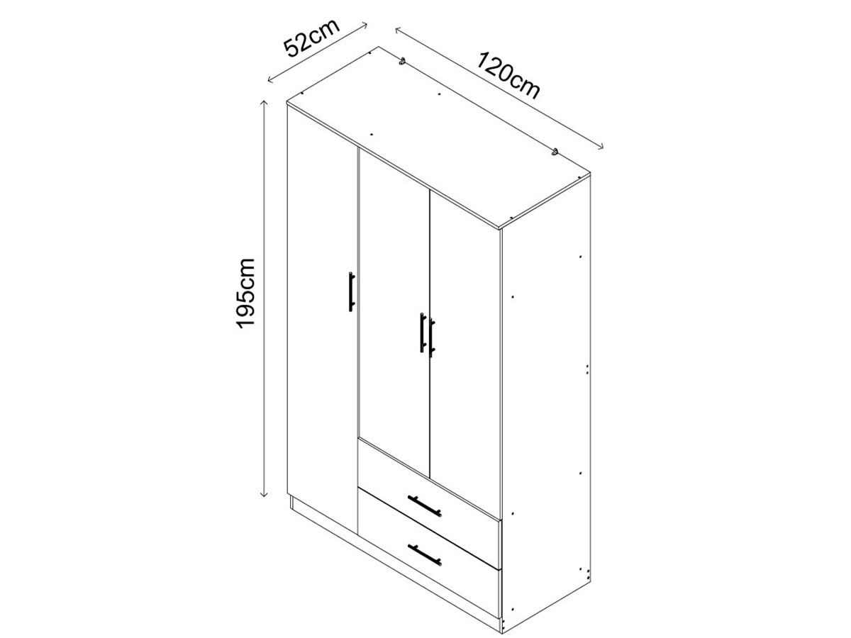 Este roupeiro inclui; 3 portas, 2 gavetas e 1 varão.