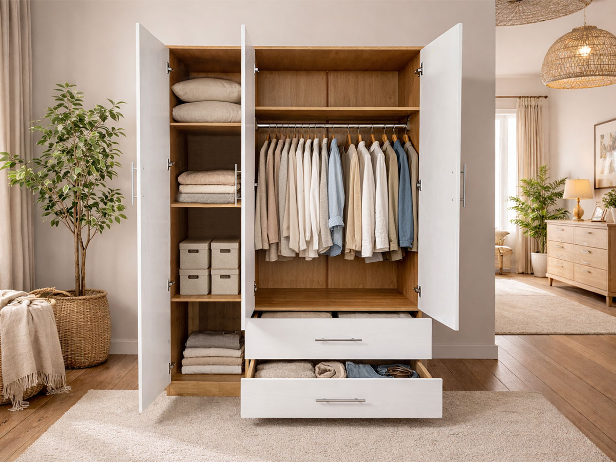Agora, podes manter roupas, calçado e acessórios sempre arrumados, organização e estilo num só móvel.